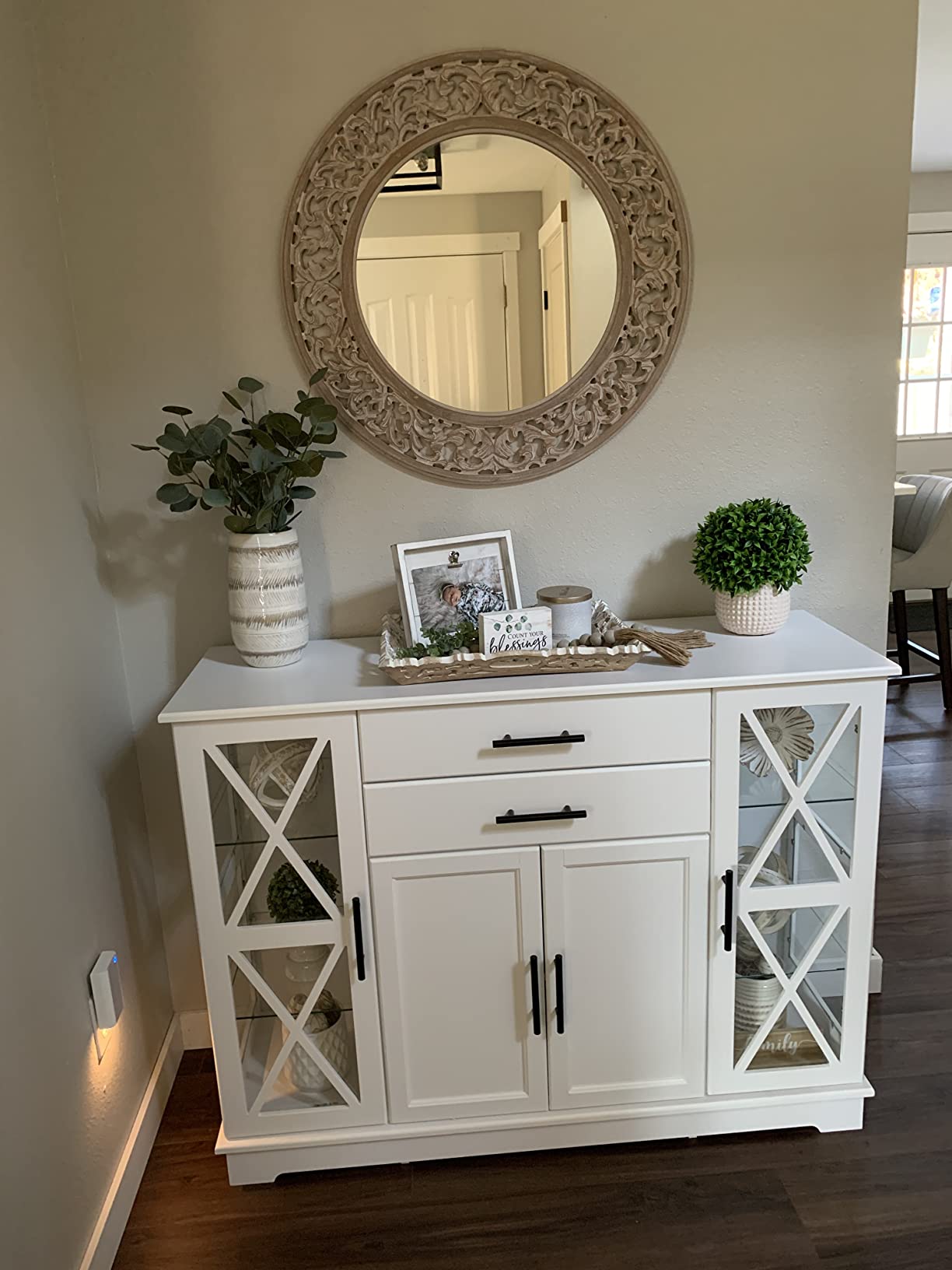 Sideboard Buffet Cabinet, Modern Wood Glass-Buffet-Sideboard with Storage, Console Table